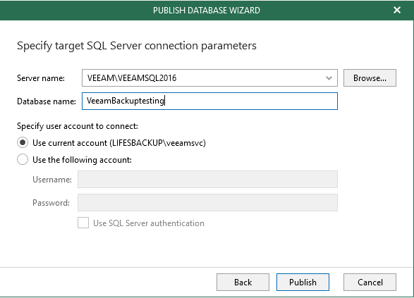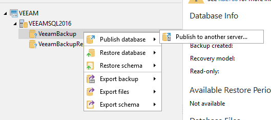 This will launch the Veeam Explorer for Microsoft SQL Explorer, here you can select the database you want to publish.
