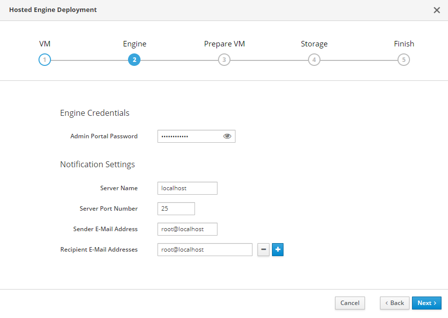 - Provide your Engine with a Admin Portal Password and configure SMTP