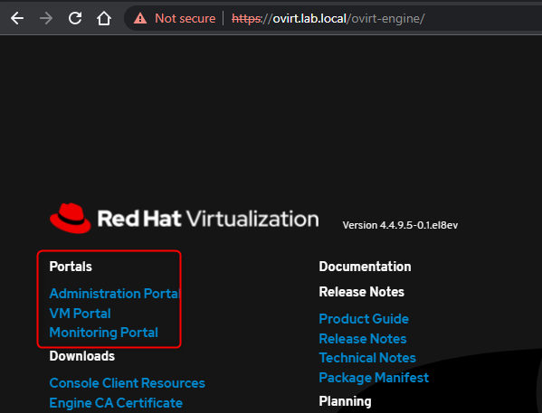 - Navigate to https://ovirt.lab.local/ovirt-engine/