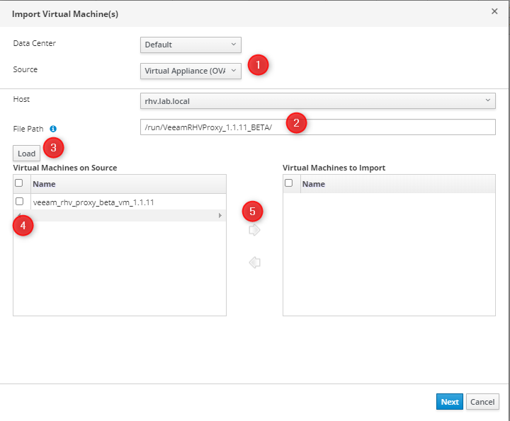 Click load, this will do a scan of the directory and should now show your OVA file.
