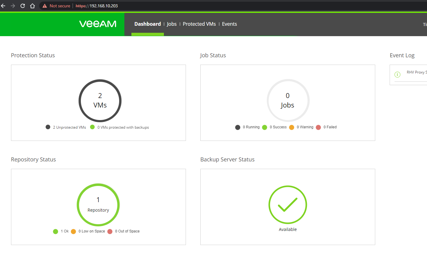 Once that is all completed, navigate back to the dashboard and it should all be beautiful Veeam green.