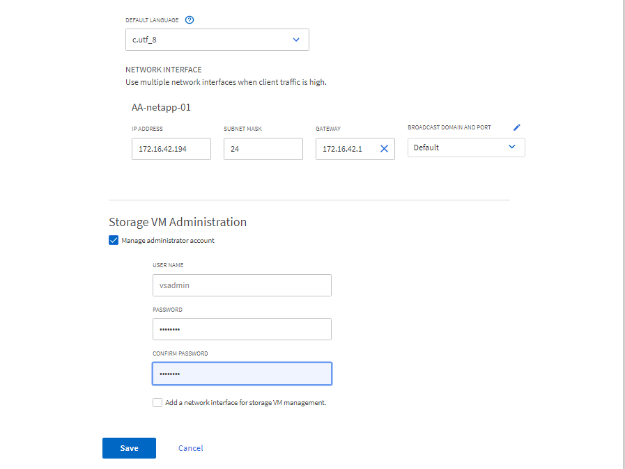 - Give your SVM a name, enable NFS and provide some IP addresses for the NFS interface.