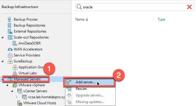 - open the Backup Infrastructure Tab